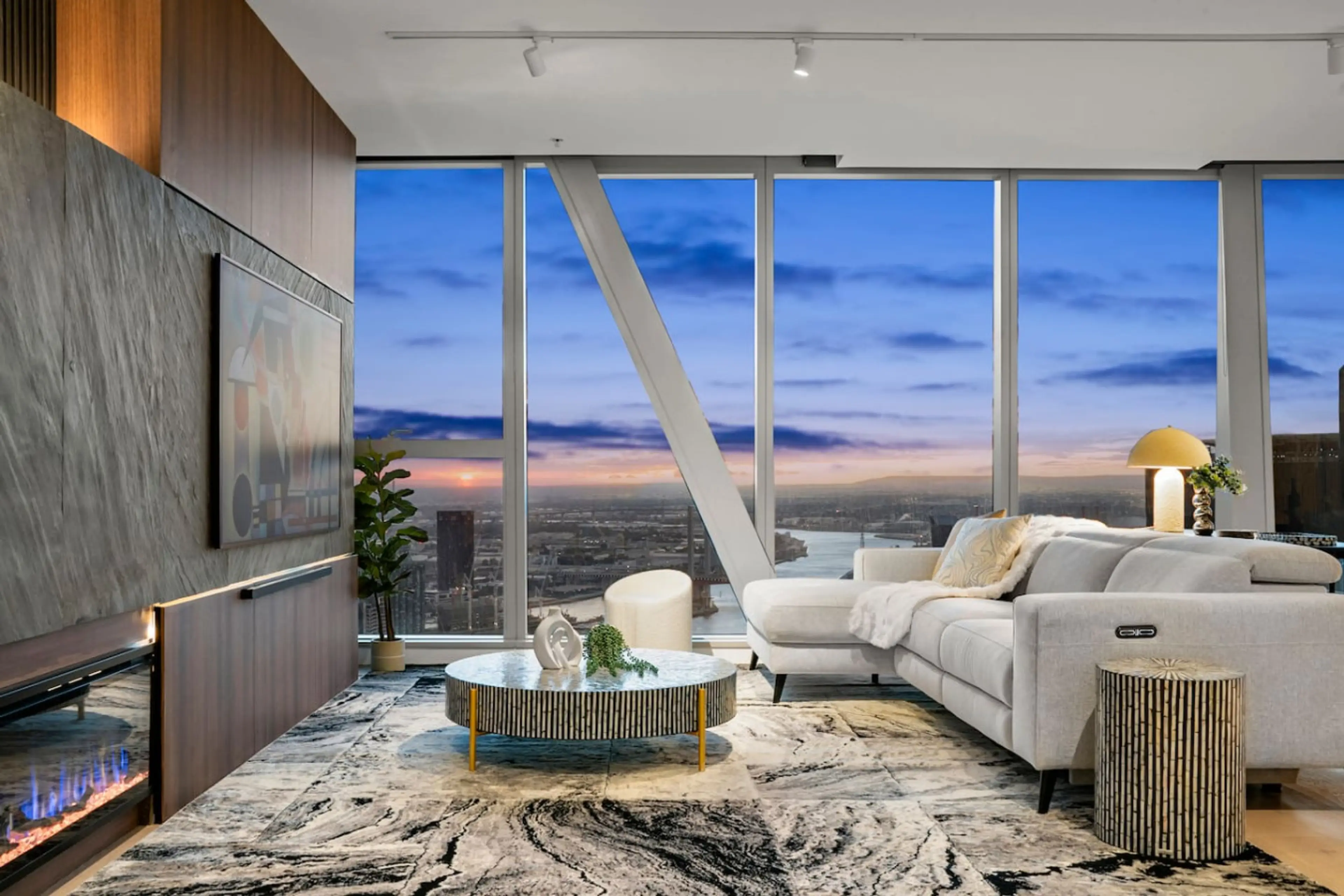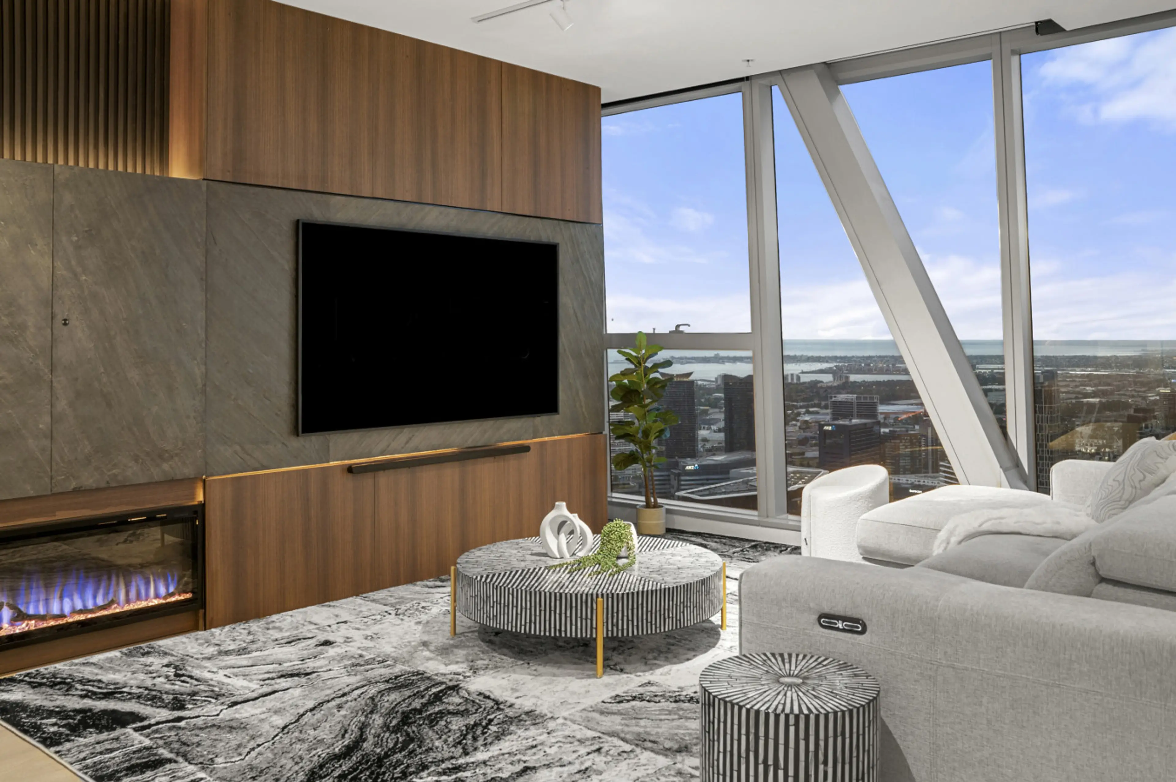 ✪ Sky-High Luxury 3BR - Skyline & Harbour Spectacle! ✪ ❅ 3BR • 2 Bath ❅ Sleeps 6: 2 King + 1 Queen Koala Mattresses ❅ 52nd-floor city & harbour skyline views ❅ Master suite with walk-in robe + soaking bath ❅ Smart TVs in both king bed rooms ❅ Fast NBN WiFi + WFH desk with panoramic outlook ❅ Record...